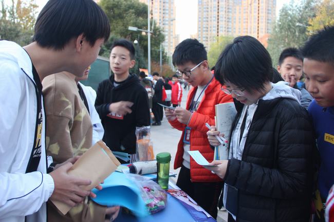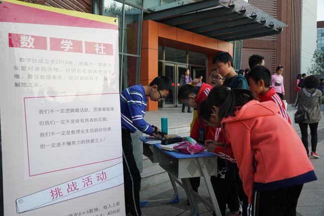 下课铃一落,随即便响起激情洋溢的活动音乐,广场上,暖场节目一一拉开,柳笛合唱团的社员们一展歌喉;体育俱乐部的部员们舞动篮球;动漫社的同学们也不甘示弱,纷纷换装在广场中央翩翩起舞;紧接着,各个社团的挑战游戏吸引了同学们的积极参与,如北斗地理社的速拼中国政区图、广播站的绕口令比拼、数学社的限时数独、微机社的机智答题等等。活动现场欢笑不断、热闹非凡。