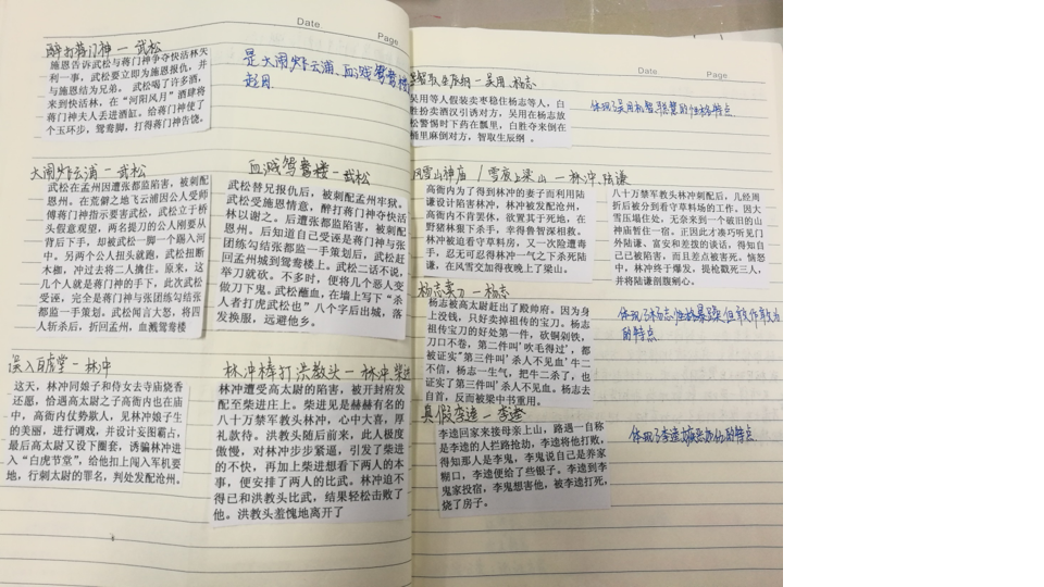 在总结部分,王老师指出“课堂笔记”只是教学过程中的一个部分,青年教师应全面把握“备”、“讲”“批”、“考”各个环节,深入学生,逐步提升自己的课堂教学水平。最后,王老师向青年教师展示了语文学科的部分优秀笔记,循循善诱,让我们学到了很多。